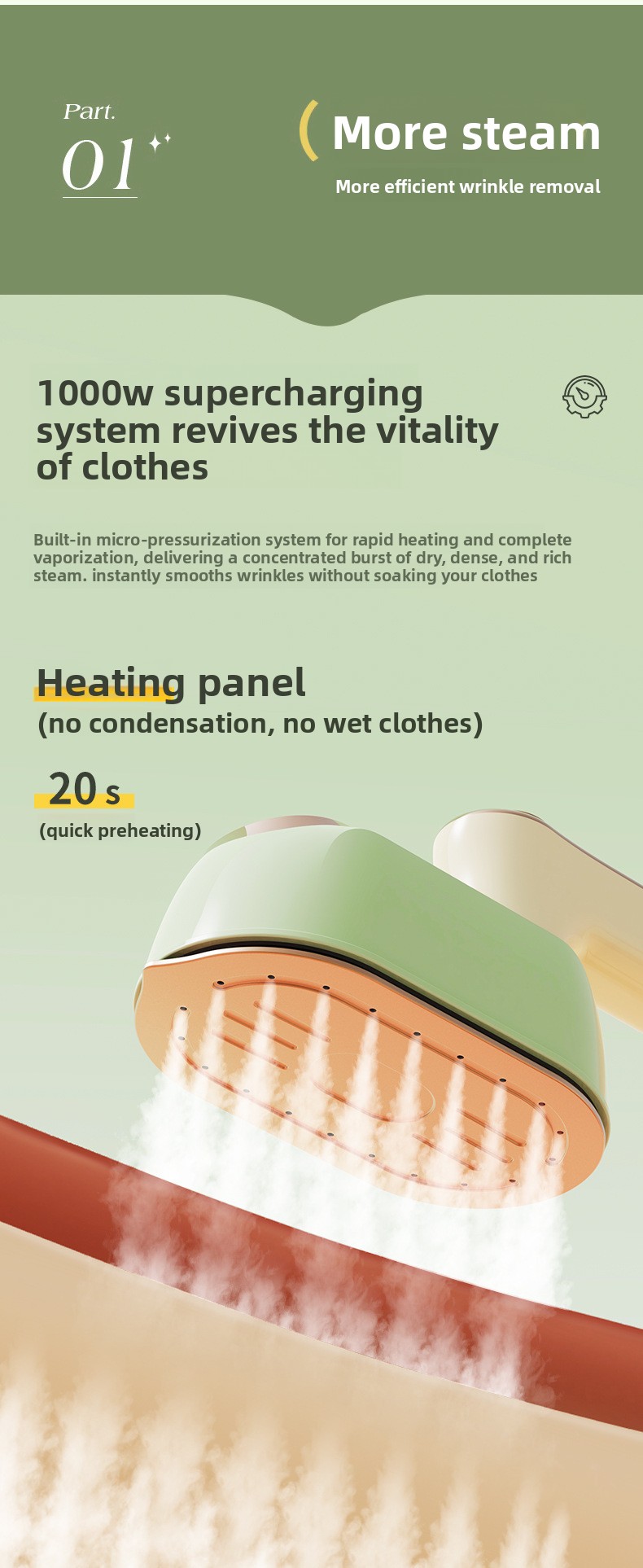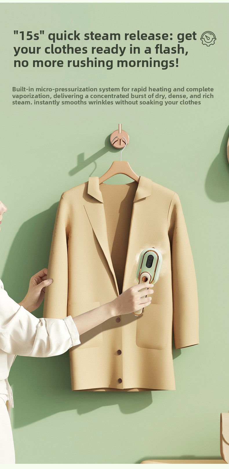 Rapid Heating: Quick steam generation within 30 seconds
